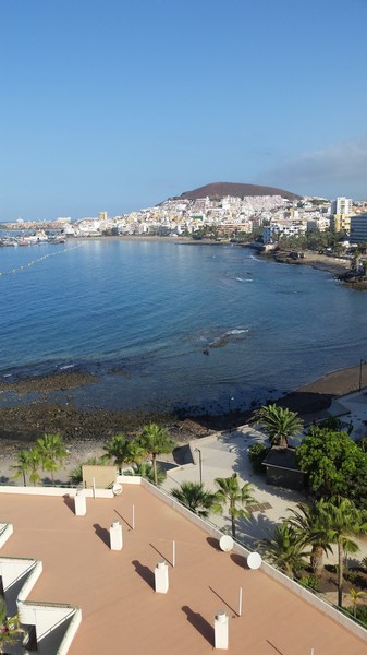 Si vende appartamento al 9 piano del complesso Costamar, a Los Cristianos. una fantastica vista al mare, al porto e a playa de las vistas a Los Cristinaos, 45 metri piú 12 metri di terrazza panoramica.